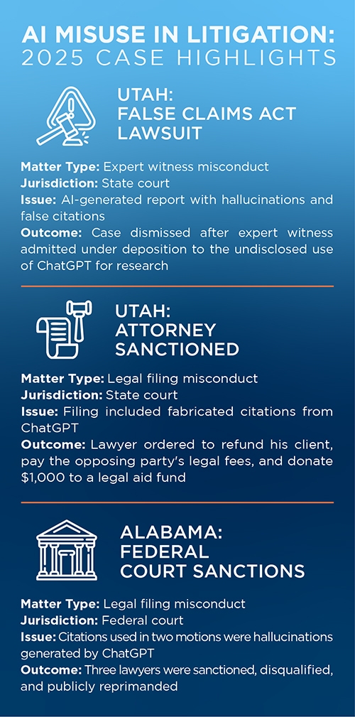 One of the biggest challenges for experts seeking to utilize AI in their reports to clients and in litigation is the technology’s susceptibility to hallucinations and the potential for providing false references and citations. In fact, several courts have sanctioned lawyers for relying on AI to cite cases and other information that did not exist.